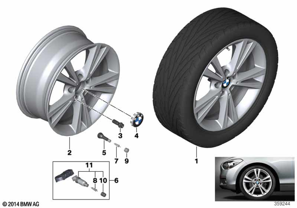 - Notes: If this is not the case it may be necessary to obtain post-factory field approval sanctioning use in the specific country!! For vehicles with BMW la wheel, double spoke 385 [S2A0A (+)] or BMW la wheel, double spoke 385 [S2A7A (+)]. Note: due to the eu ordinance on batteries, a component designation is required by law for rdc sensors or for components with a permanently installed battery! When purchasing this product, the attached document must be printed out and given to the customer.